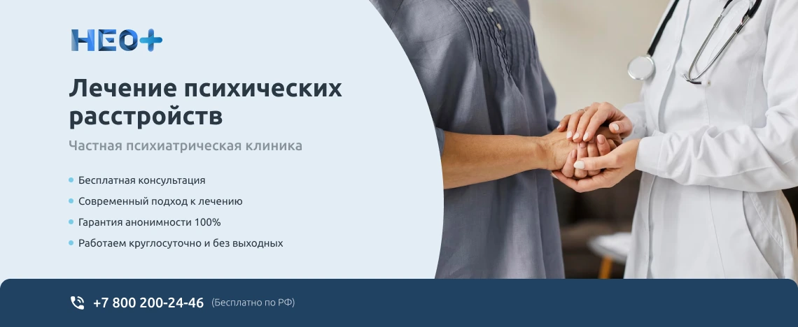 Записаться на прием к врачу-психиатру можно на официальном сайте клиники «НеоПлюс» в Смоленске или по телефону ☎️ +7 (800) 200-24-46. Звоните нам, не запускайте проблему. Мы знаем, как вернуть здоровье и покой в Вашу семью!